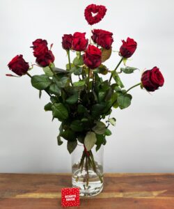 • 10 prachtige Red Naomi rozen. Deze rozen zijn de koningin onder de rozen, met hun grote, fluweelzachte bloemen en hun dieprode kleur. Ze staan symbool voor passie, elegantie en waardering. Met deze rozen kun je je partner laten zien hoeveel je van hem of haar houdt en hoeveel hij of zij voor je betekent.
