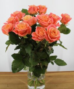 Een adembenemend boeket van 12 prachtige Miss Piggy+ rozen in een betoverende mix van zalmroze en oranje tinten. Deze exclusieve roos, een van onze topfavorieten, is de perfecte keuze om iemand te verrassen met een vleugje warmte en elegantie. Deze rozen zijn niet alleen een lust voor het oog, maar ook een symbool van genegenheid en blijdschap.