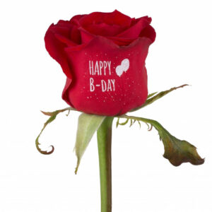 Voor iedere gelegenheid kunnen we een roos bedrukken. In onze uitgebreide database hebben we een groot aantal teksten in diverse talen beschikbaar, Maak het nog persoonlijker met uw eigen logo of tekst. Het minimum aantal begint vanaf 50 stuks, en levertijd van minimaal 1 dag. Kies voor een witte opdruk of voor sjiek goudkleurig. Voor het toepassen van een eigen logo of tekst moeten we wel cliché kosten berekenen @ 15,-