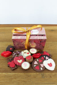 Besides the most beautiful roses, we now also offer the most delicious Belgian chocolate. We've specially sourced it and mixed and packaged it ourselves, a delightful mix with hearts, lips, and more, all equally delicious. You can also find this chocolate at upscale bakeries.
