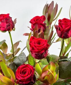 If you want to spoil someone with a beautiful and inexpensive bouquet, choose this stunning bouquet from rozen.co.uk. This bouquet consists of 10 red naomi roses, which have a perfect red colour and a subtle fragrance, and 7 leucodendron. Together, these flowers form a harmonious whole of passion and purity. Order now and give yourself or someone else a warm Christmas feeling with this gorgeous bouquet from roses.co.uk.