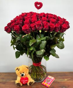 Order this unique combination of roses, chocolate, and a teddy bear now for just €385. You'll amaze your loved one with this romantic gesture.