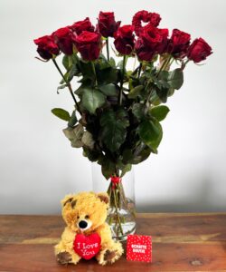 Vous voulez surprendre votre bien-aimé(e) avec le cadeau ultime de la Saint-Valentin ? Alors commandez dès maintenant ce magnifique bouquet de 15 roses Red Naomi, les roses rouges les plus populaires et les plus luxueuses à vendre. De plus, ce bouquet est accompagné d'un adorable ourson "Je t'aime".