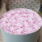 Deze rozenbox heeft een diameter van 25cm en er zitten 24 "longlife rozen" uit Equador in. Hier heb je tot wel 3 jaar plezier van.