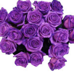 Deze rozen zijn in een nacht van creme naar paars veranderd. Ze zuigen de verf door de steel op naar de kop, hierdoor is ook het blad donker gekleurd door de verf. De houdbaarheid is daardoor wel wat minder, maar een week is nog ruimschoots haalbaar. In de winter zijn de koppen helaas wat minder groot omdat er maar 1 roos echt geschikt is voor dit procedé. De uiteindelijke kleur kan een klein beetje afwijken.